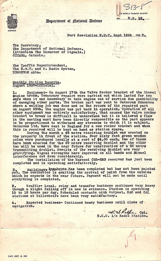 The following are official reports related to Fort Resolution, a station in the Northwest Territories and Yukon Radio System during the period of 1936-37.[1]
